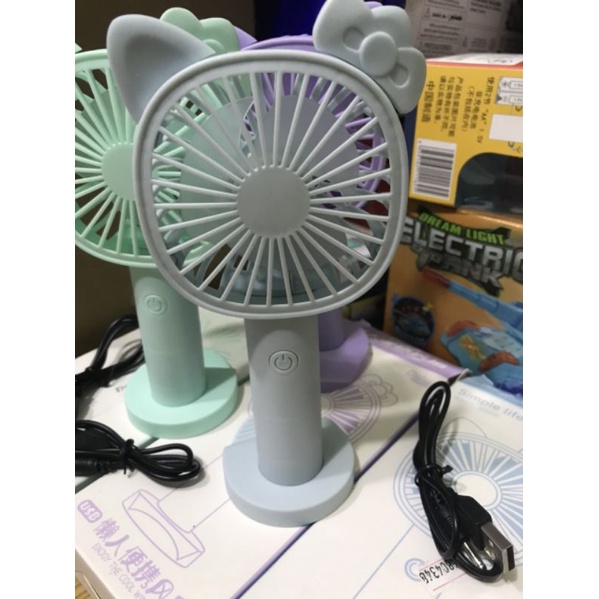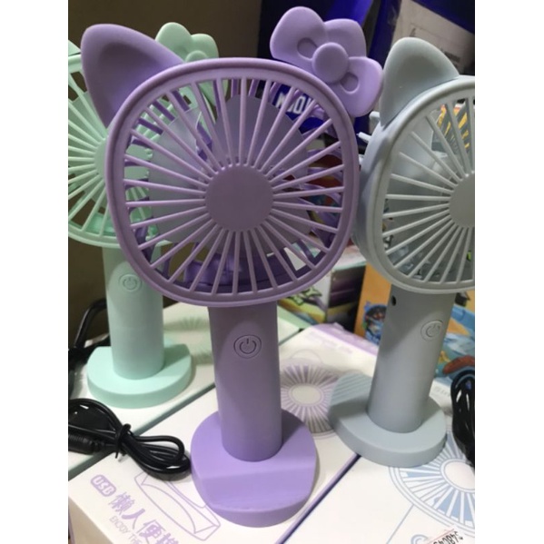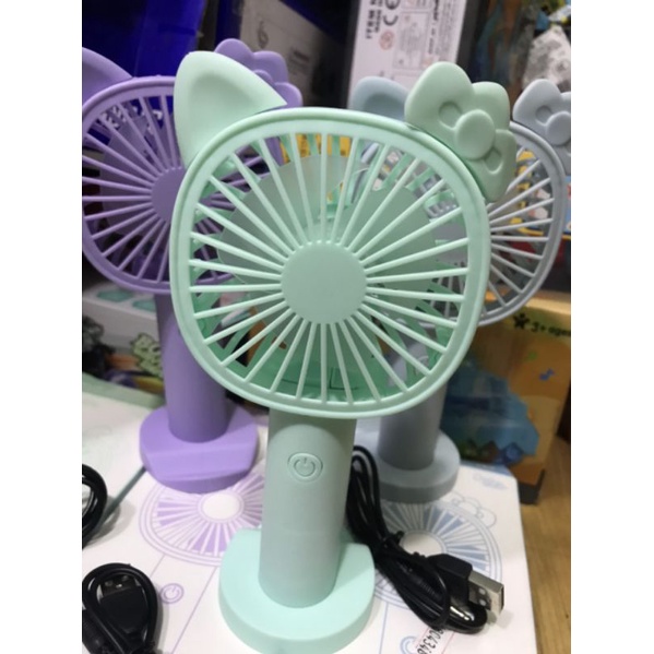 Quạt tích điện đứng kèm đế và đây xạc, có 3 màu như hình là xanh lá, xanh dương và tím. Thời gian sử dụng từ 4 - 6h tùy chế độ quạtThời gian xạc pin 6 giờ