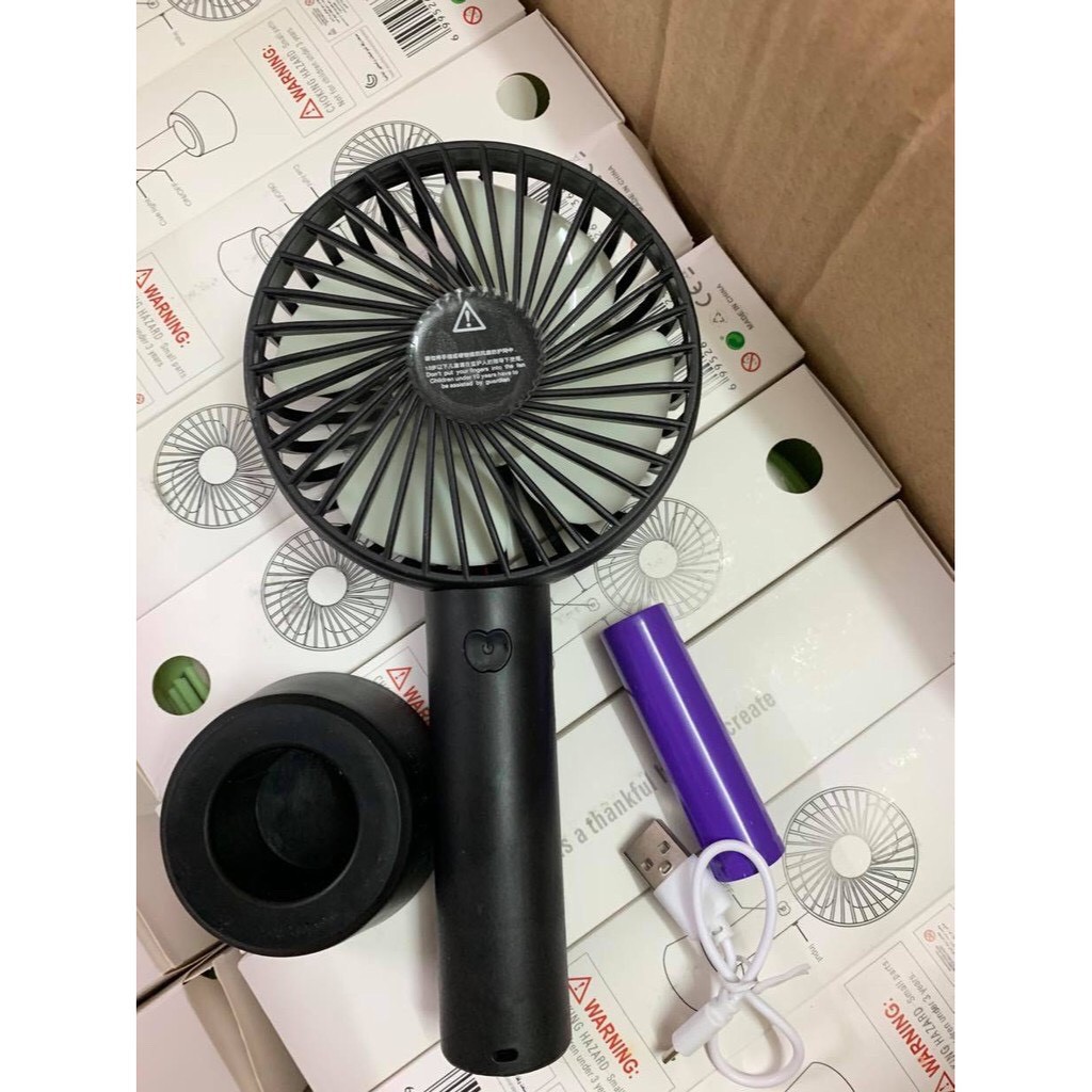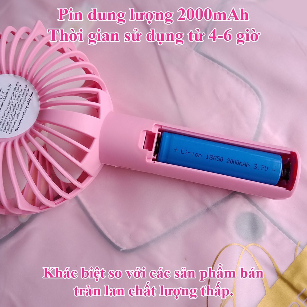 Quạt Tích Điện Mini Cầm Tay 3 Chế Độ Gió Bền Bỉ và Mạnh Mẽ,Tặng Pin kèm Dây Sạc USBQuạt có thể hoạt động liên tục trong nhiều giờ liền, khi hết pin có thể sạc lại dễ dàng thông qua cổng USB cốc sạc của điện thoại hoặc cắm qua cổng USB của laptop và máy tính.