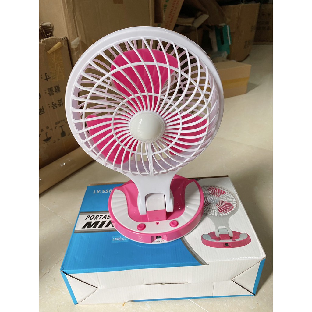 Quạt tích điện mini cầm tay có đế để bàn HT 5580 cao cấp