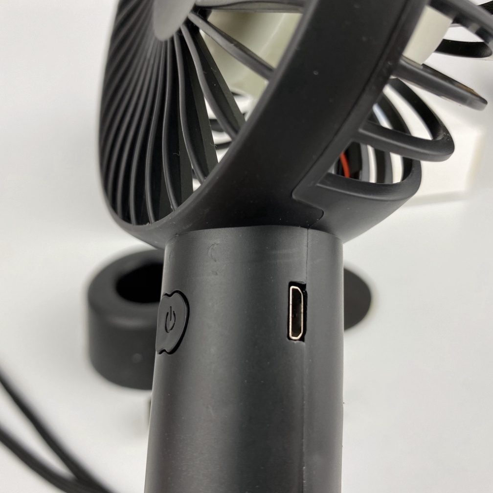 - Quạt được đi kèm 1 chân đế giúp trở thành 1 chiếc quạt để bàn học hoặc bàn văn phòng làm việc. Ngoài ra còn có 1 dây đeo giúp b mang theo quạt mini đi bên minh