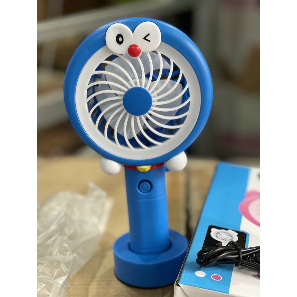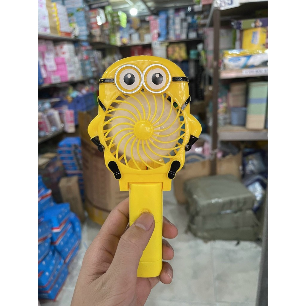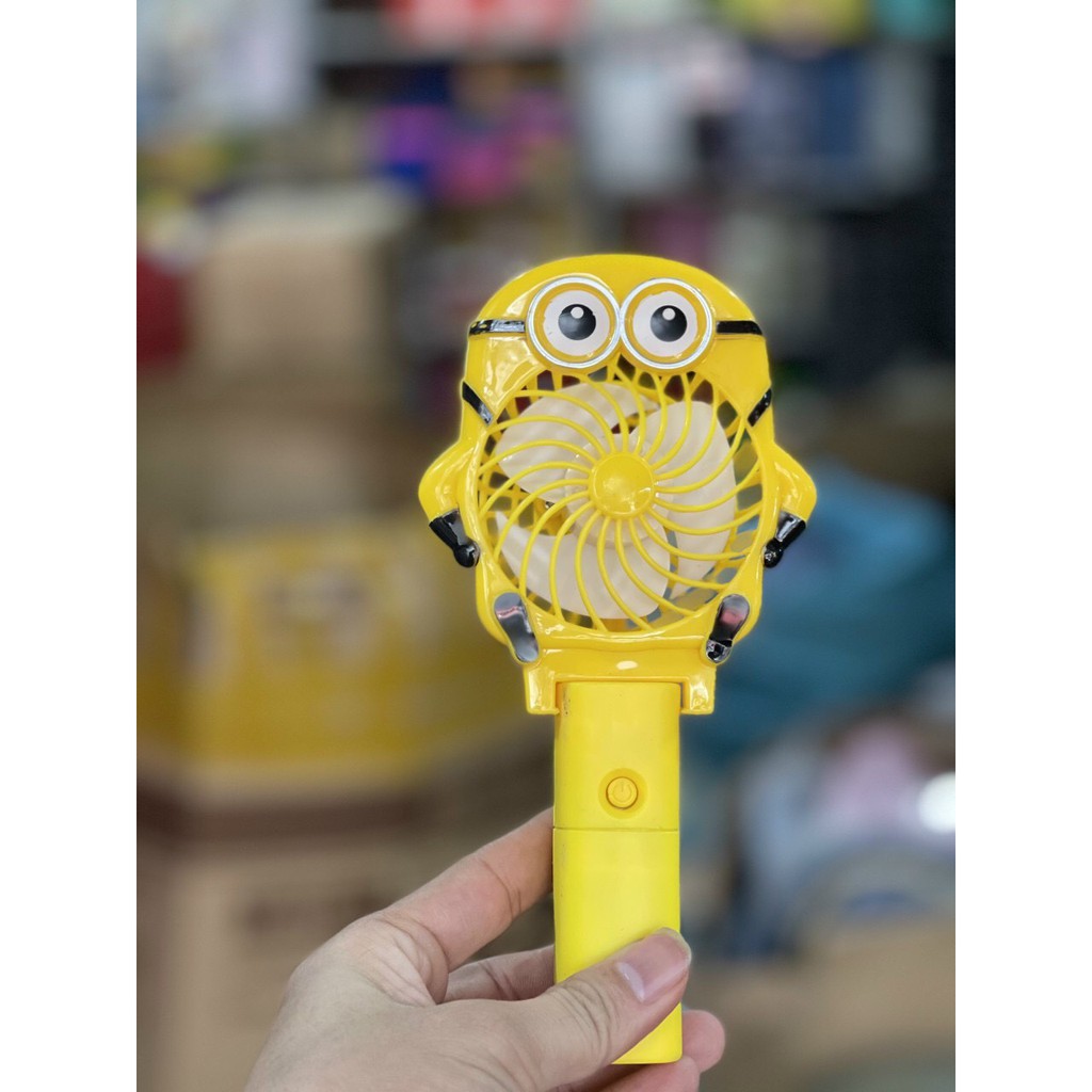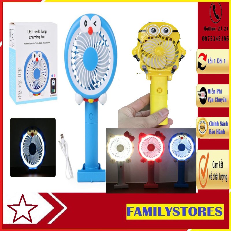 Quạt tích điện mini cầm tay Minion,Doreamon có đèn Led-cute đáng yêu