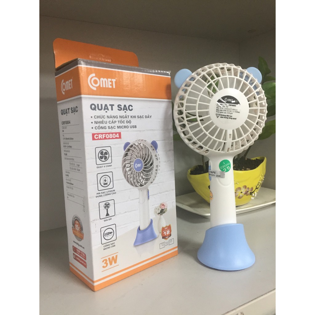 Quạt tích điện mini Cầm Tay sạc pin Comet 3W có đế rời để bàn CRF0804