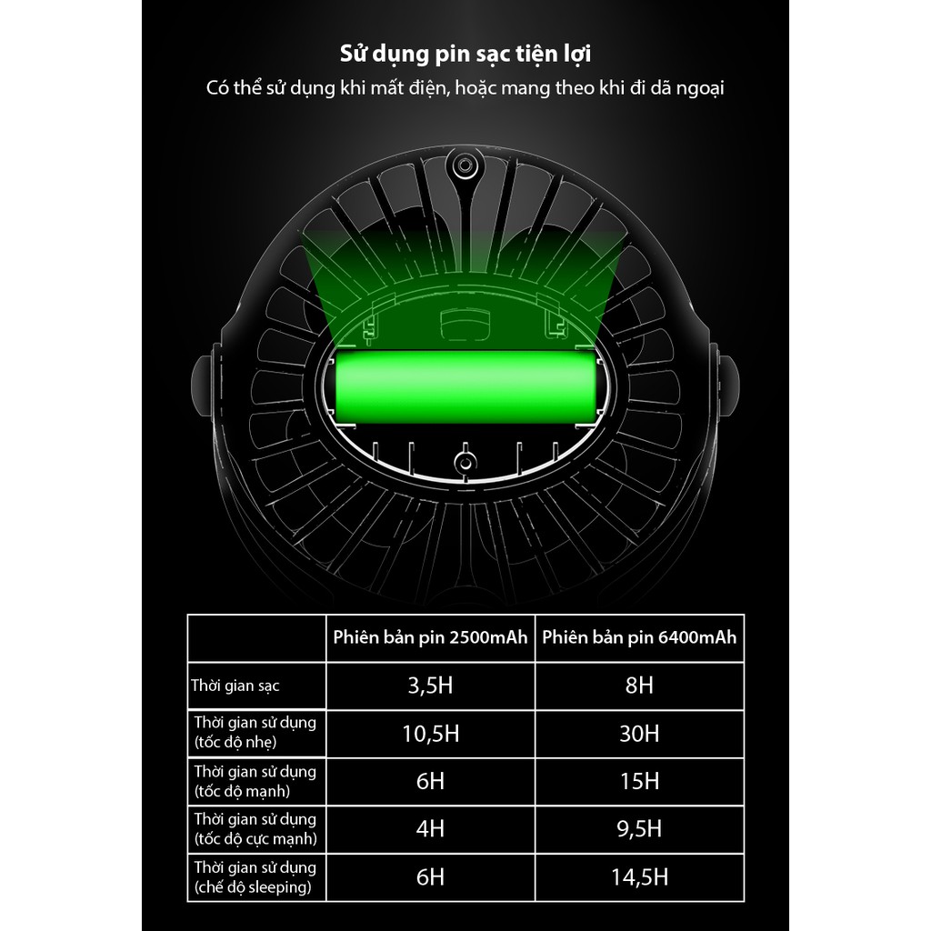 Quạt sử dụng pin sạc nên có thể dễ dàng mang theo khi đi dã ngoại hoặc sử dụng khi mất điện.