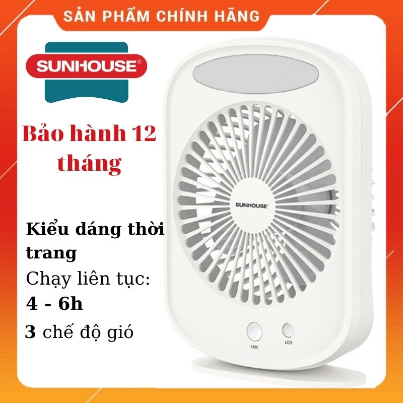 Quạt Tích Điện Mini có đèn Sunhouse SH7110, Sạc Điện Nhanh, Pin Khỏe, Chạy Êm, Có Đèn Led – [Bảo Hành 12 Tháng]