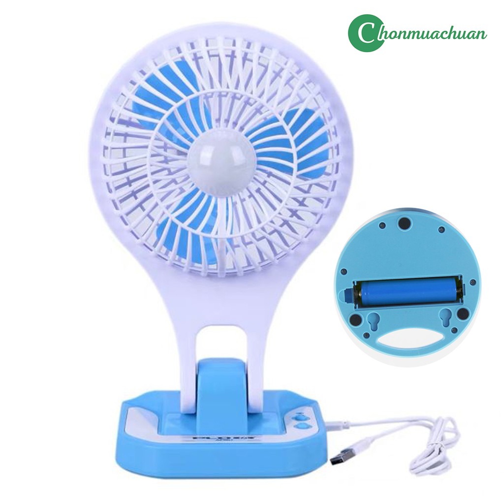 Quạt Tích Điện Mini Đèn LED Gấp Gọn Tiện Lợi - Quạt Sạc Tích Điện Để Bàn