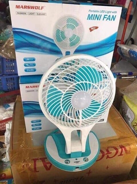 Quạt Tích Điện Mini Fan Có Đèn Led