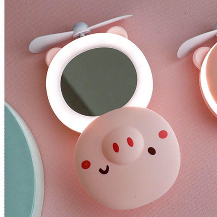 Gương quạt đèn led hình lợn hồng siêu cute 3in1.