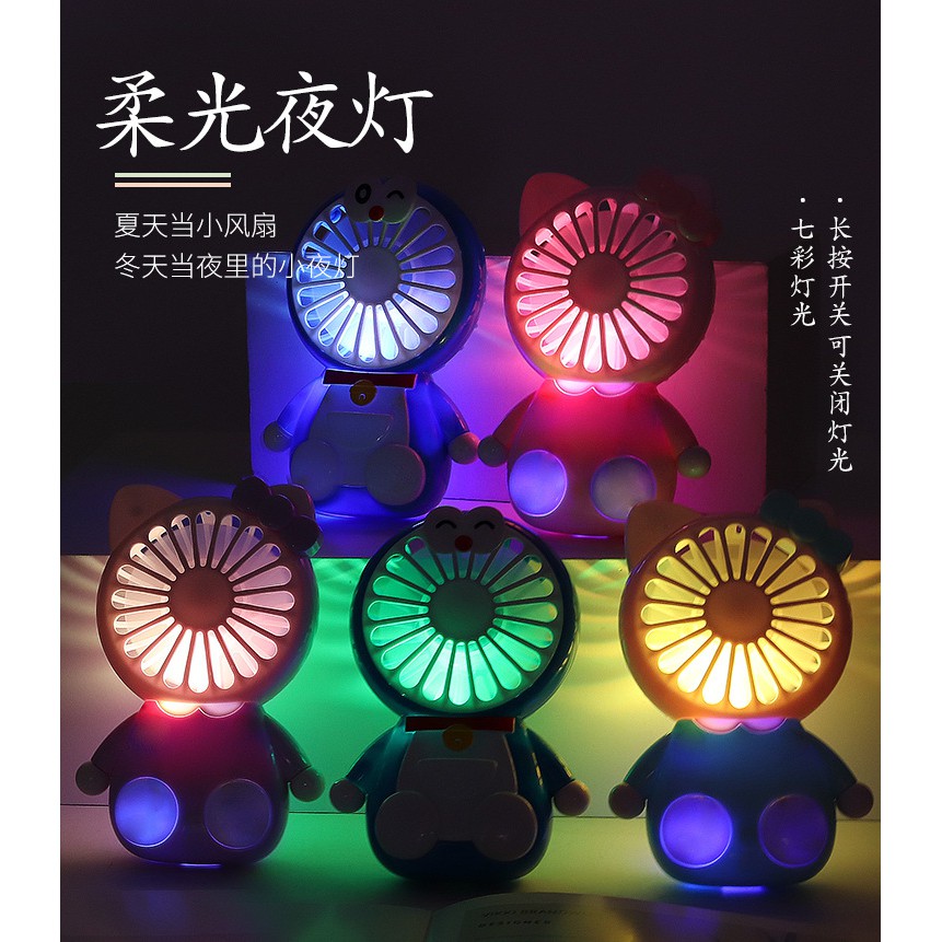 Quạt Tích Điện Mini Hình Thú Có Dây Đeo Và Đèn Đổi Màu