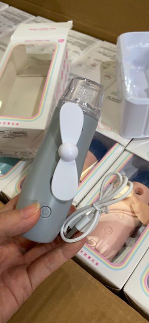 Mai kho e về 2 thùng 300 cái quạt cầm tay- để bàn đều đượcTác dụng: phun sương làm ẩm da - quạt - tích điện rất tiện lợi cầm tay đi du lịch , làm việc và đặc biệt lúc mất điện thì có chiêca quạt mini này quả là quá tuyệt luôn ạ