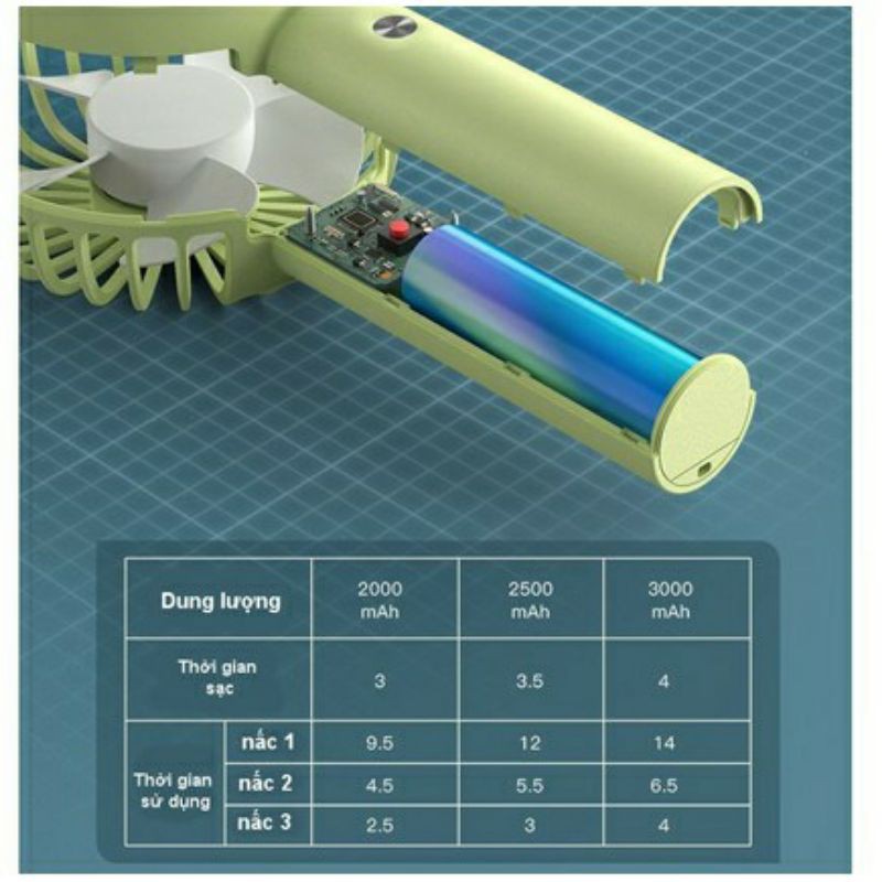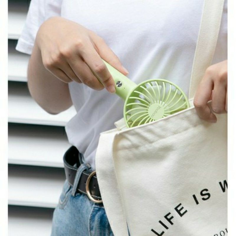Quạt có thể cầm tay hoặc đặt trên bàn khi sử dụng
