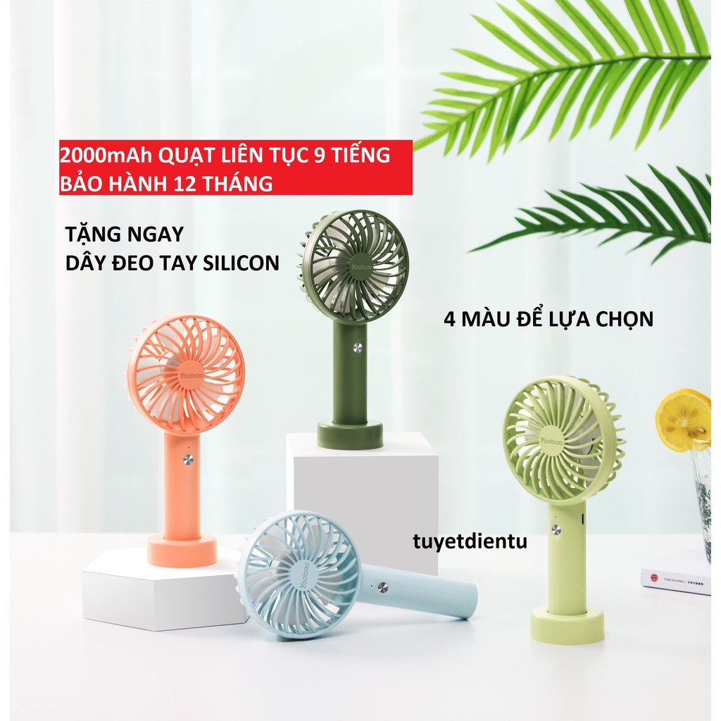 Quạt tích điện mini Yoobao F3S dung lượng 2000mAh, liên tục 9 tiếng, tặng dây đeo silicon cùng màu