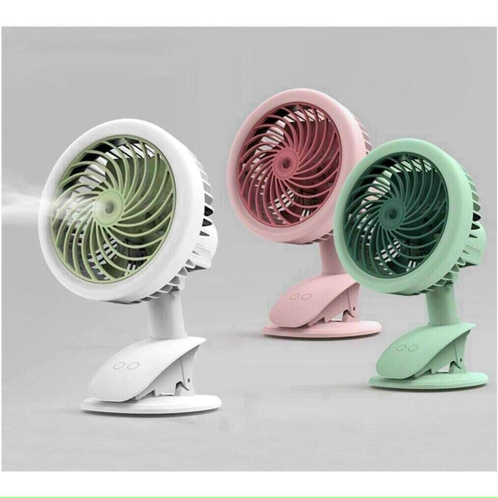 Quạt Mini Để Bàn Đa Năng, Có Kẹp Bàn, 3 Cấp Độ GióQuạt tích điện PHUN SƯƠNG. Có thể kẹp xe đẩy hoặc để bàn, ô tô.