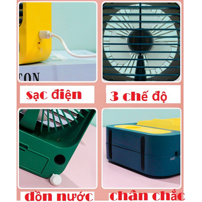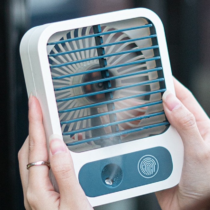 🌞 Quạt Tích Điện, Quạt Phun Sương, Máy Tạo Độ Ẩm, Máy Xông Tinh Dầu Đẹp Da Để Bàn Cần Tay 3 Chế Độ Mát Làm Lạnh Hơi Nước Cao Cấp Kích Thước 16x12x5.5 Cm+ Nhấn quạt gữ nút vân tay để bật phun sương - Bật quạt các số nhấn nhả nút vân tay là tăng chế độ mát ạ.