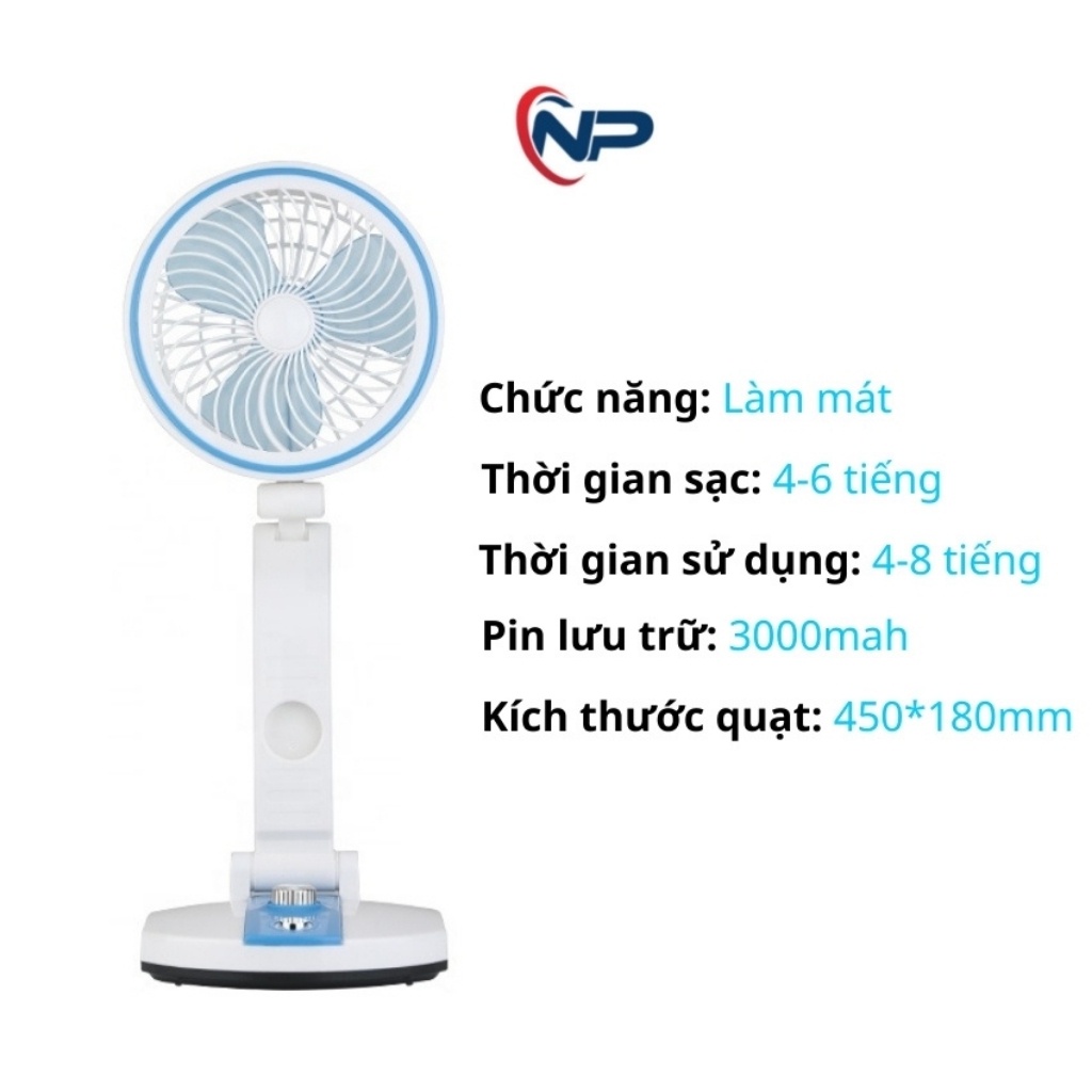 Quạt Tích Điện,Quạt Gập Cầm Tay NHiều Tư Thế JH 2018, Có Đèn, Dây Sạc Phù Hợp Cho Dân Văn Phòng, Học sinh, Sinh Viên