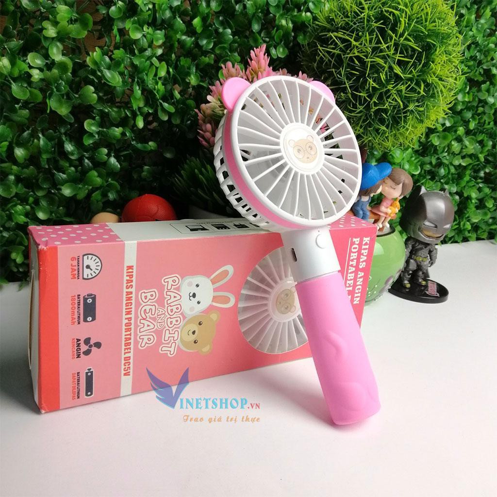 Quạt tích điện-Quạt mini Cầm Tay TAI GẤU cực đẹp - tiện lợi - đi học/đi làm/đi dạo phố có 3 chế độ gió pin khủng -dc3610