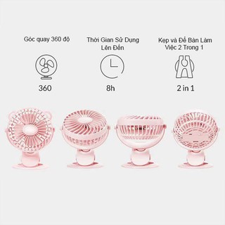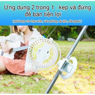 Quạt Tích Điện - Quạt Mini Để Bàn Có Kẹp Xoay 720 Độ Tiện Lợi
