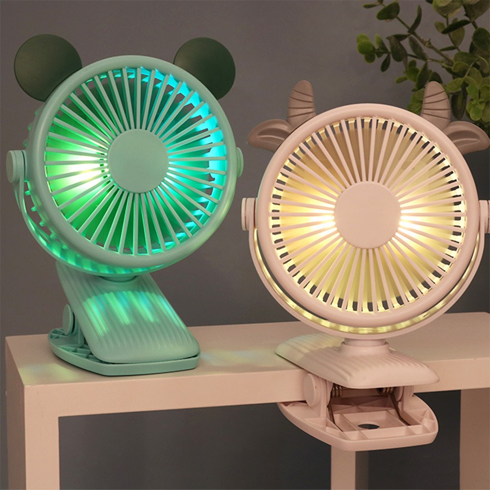 Quạt Tích Điện Tai Mèo Cute V7 Có Đèn - Kẹp Bàn