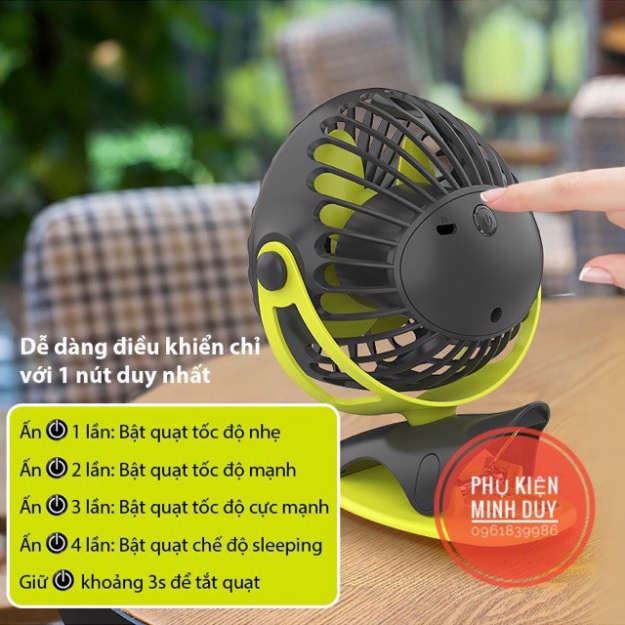 ✅ Quạt sạc mini xoay góc 720 độ✔️ Đế kẹp đa năng trên mọi vật dụng như: bàn, ghế, xe nôi em bé...