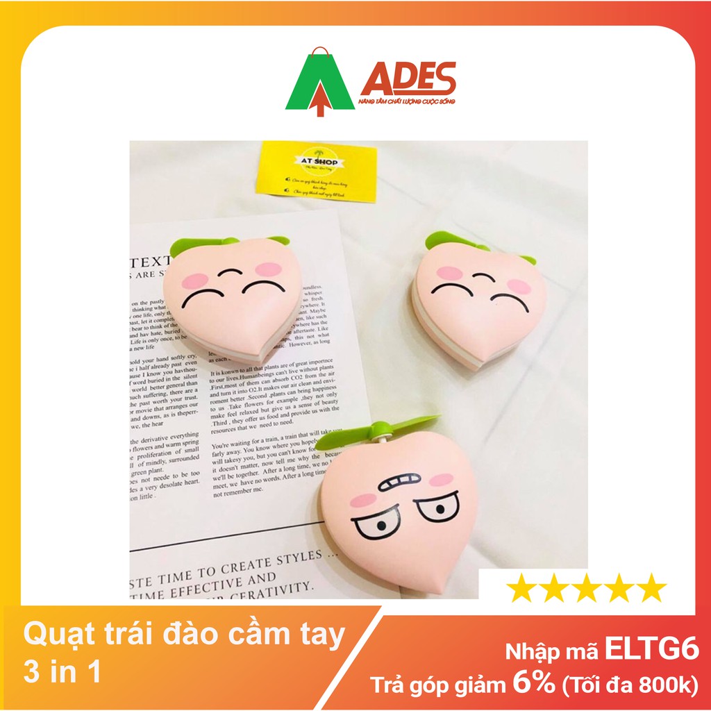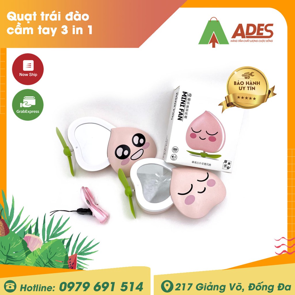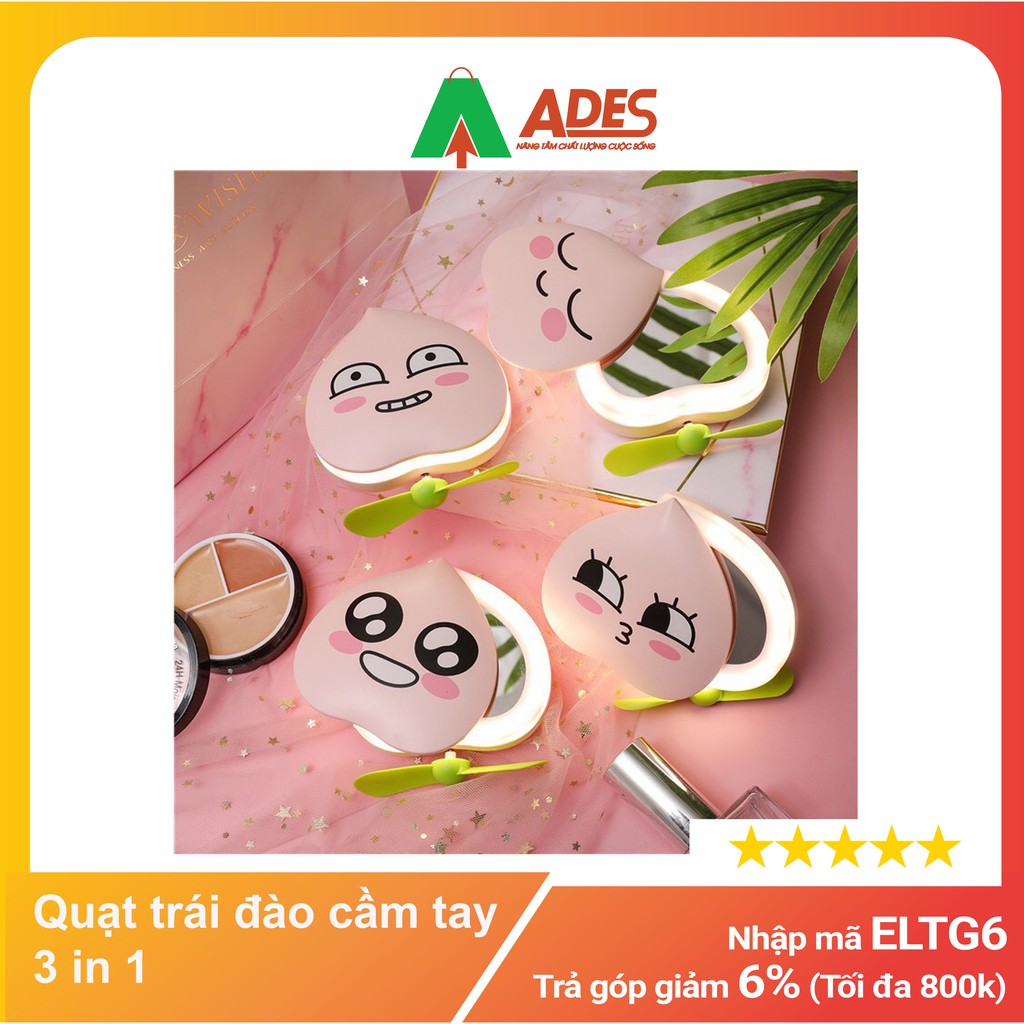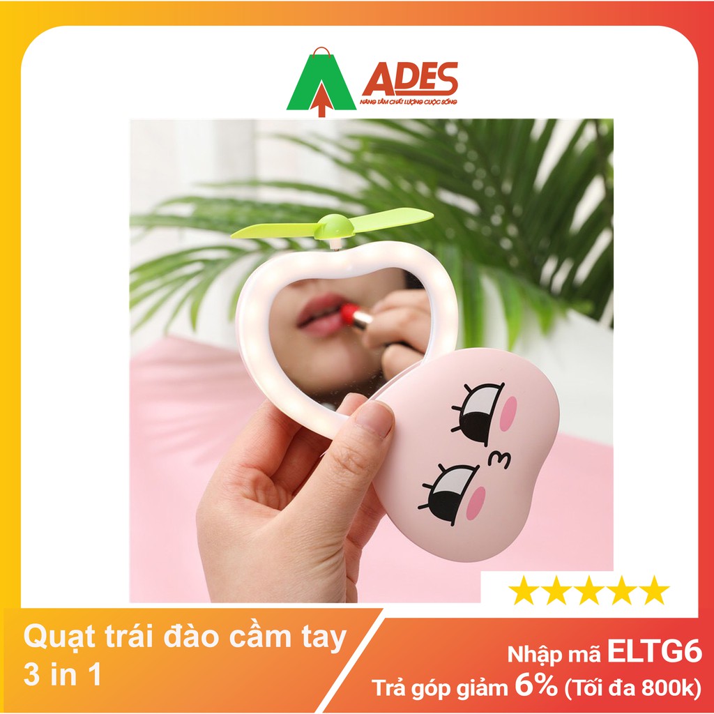Quạt trái đào cầm tay 3 in 1 - Gương Đèn Quạt - HOT HIT 2021