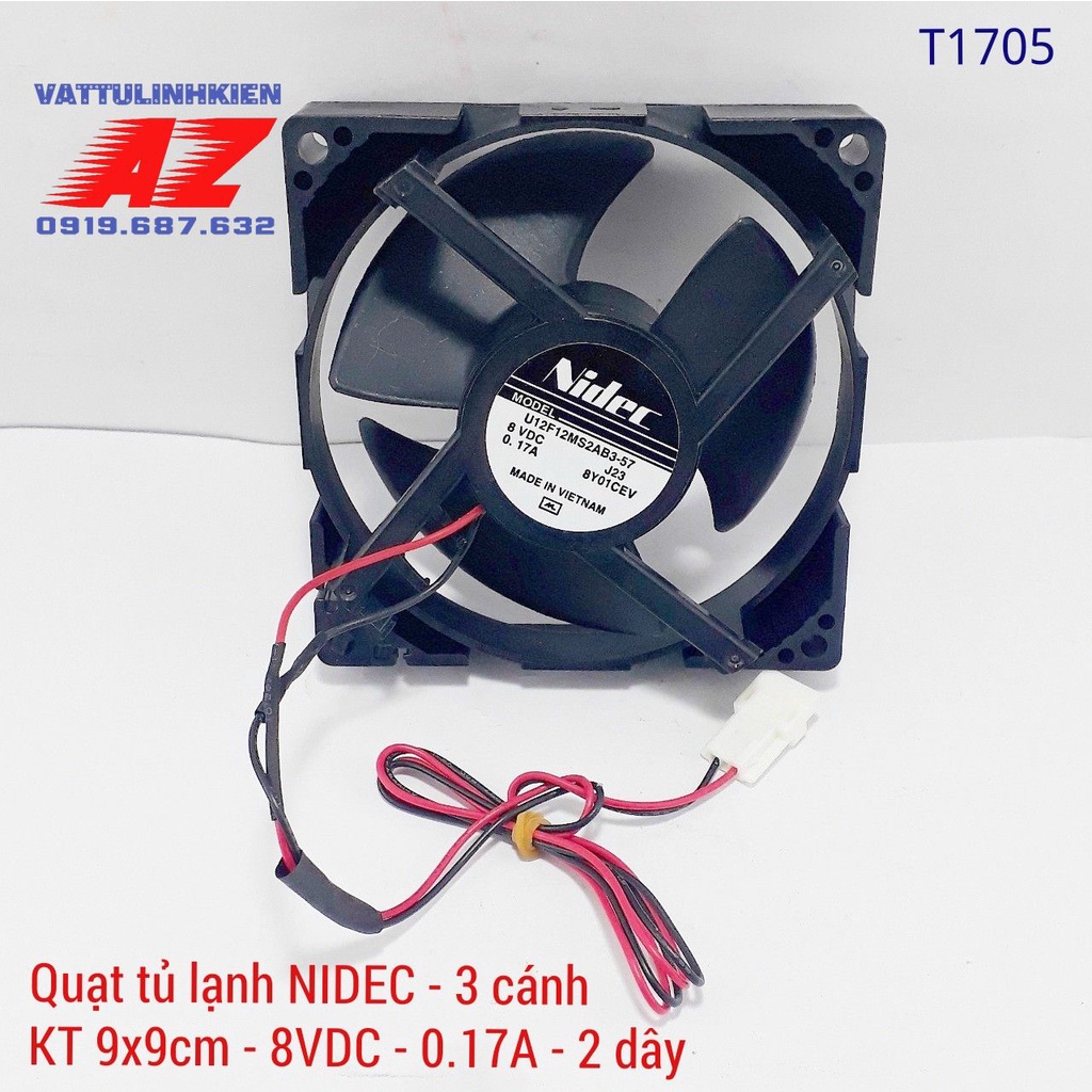 Quạt tủ lạnh 3 cánh KT 9cm x 9cm NIDEC DC8V-0.17A-2 dây