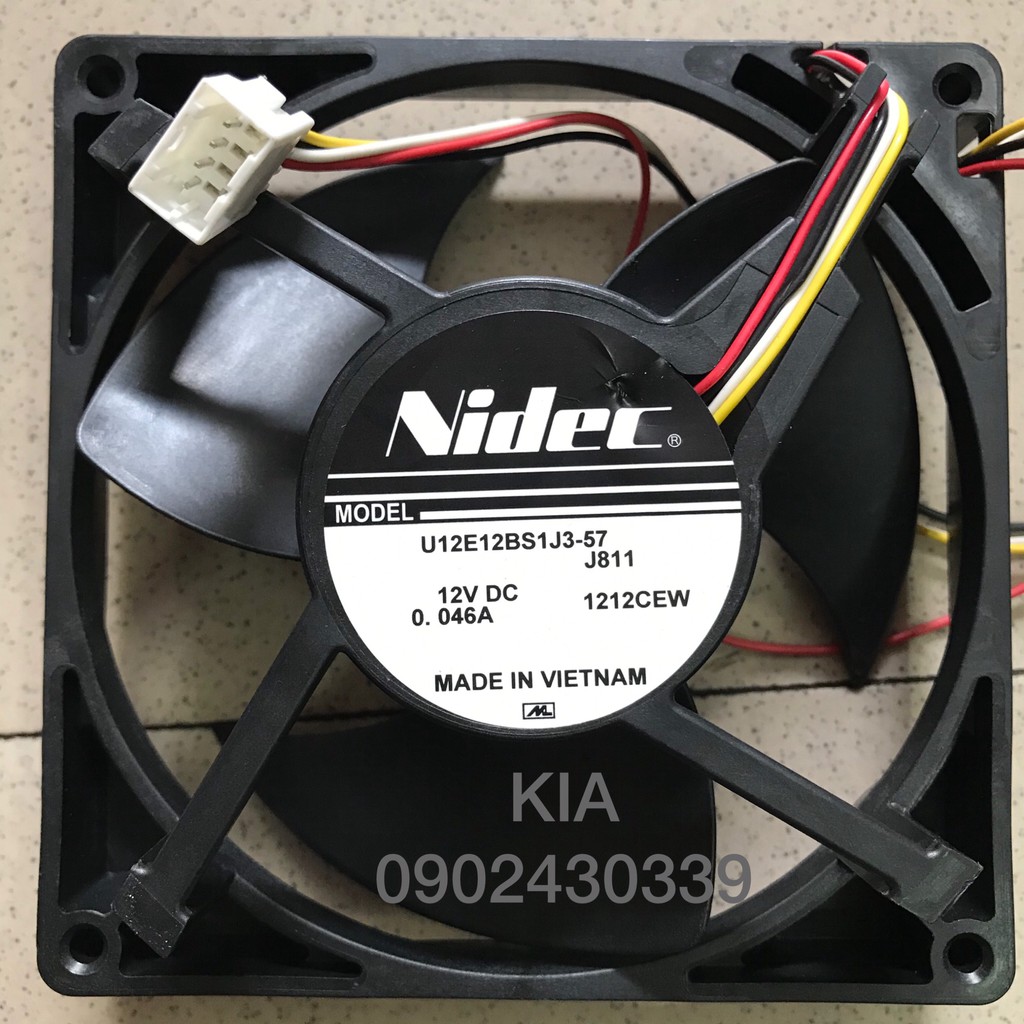 Quạt tủ lạnh DC 12v - 4 dây- 3 cánh 12.5cm x 12.5 cm ( Dùng cho tủ lạnh)Quạt tủ lạnh 12v DC 0.046A 1212CEW