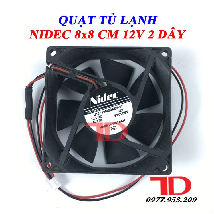 Quạt tủ lạnh Nidec 8x8 cm 2 dây 12VHotline: 0977.953.209 (Zalo, Viber)