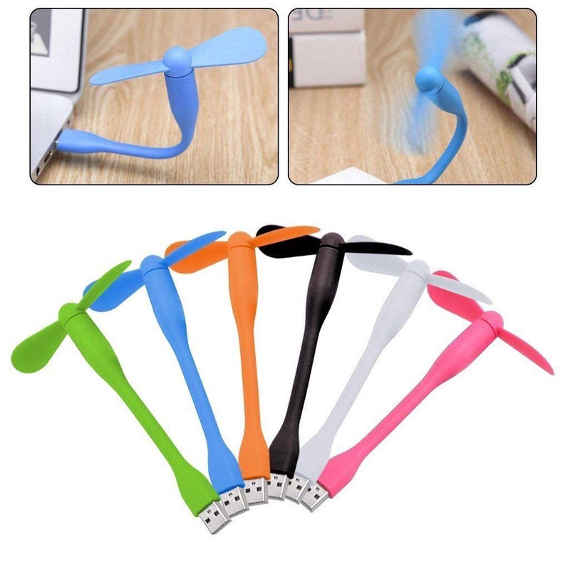 Quạt USB 2 cánh tiện dụng cực mát - Sản phẩm được giao màu ngẫu nhiênQuạt nhỏ xinh và cực kỳ tiện dụng, không cần dùng pin, bạn chỉ cần cắm vào bất kỳ thiết bị nào có cổng USB là có thể sử dụng. Thật tuyệt khi trong những ngày hè nóng nức vừa làm việc mà luôn con một chiếc quạt nhỏ gọn cắm thẳng vào máy tính của bạn.