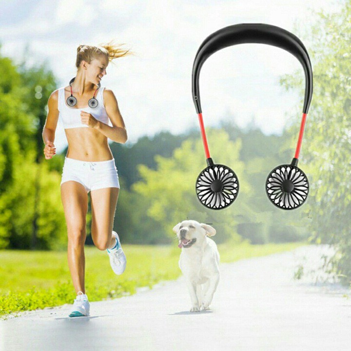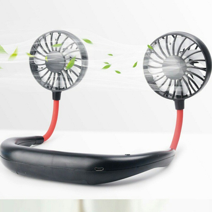 Quạt USB Đeo Cổ dành cho người tập GYM, Cầm Tay 360 Độ, Quạt để bàn tích điện, 3 chế độ gió, có cổng sạc