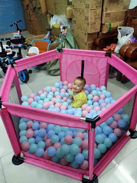 THÔNG TIN SẢN PHẨM:-Quây cũi cho bé lục giác bằng vải khung inox kiêm nhà bóng: