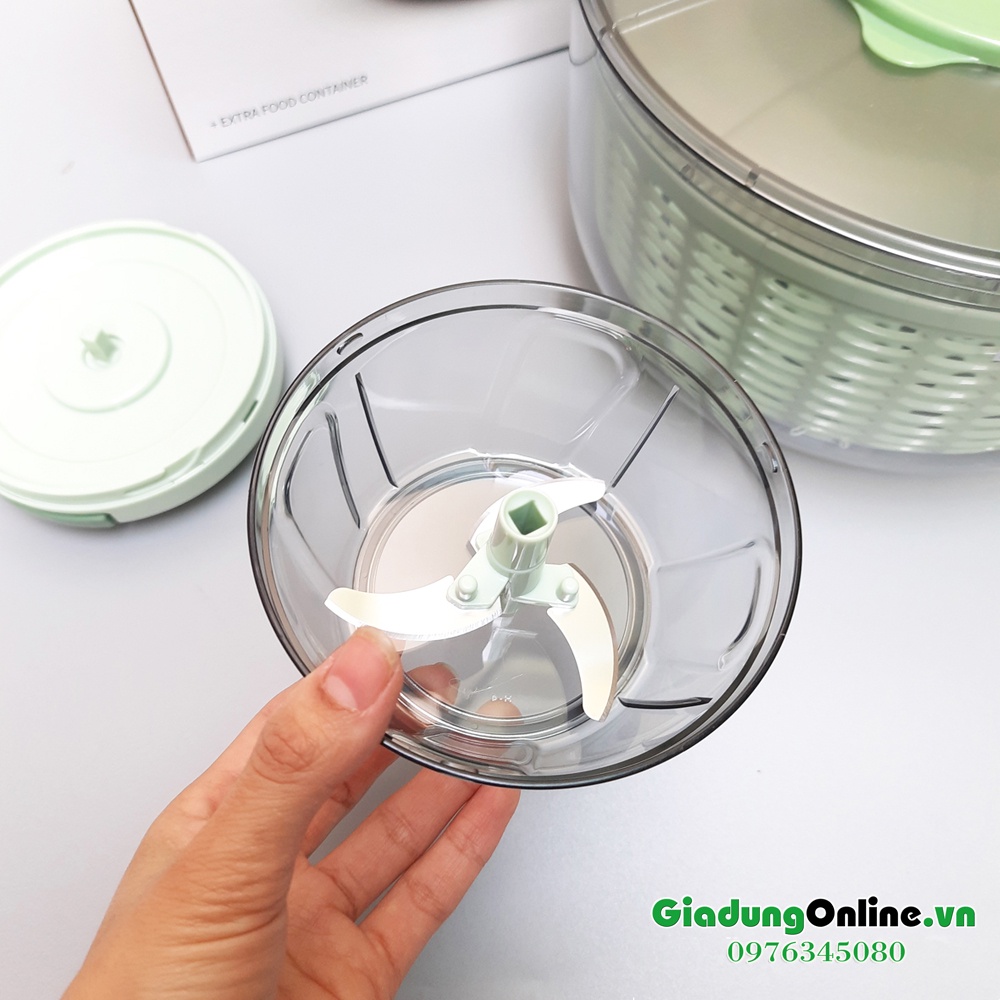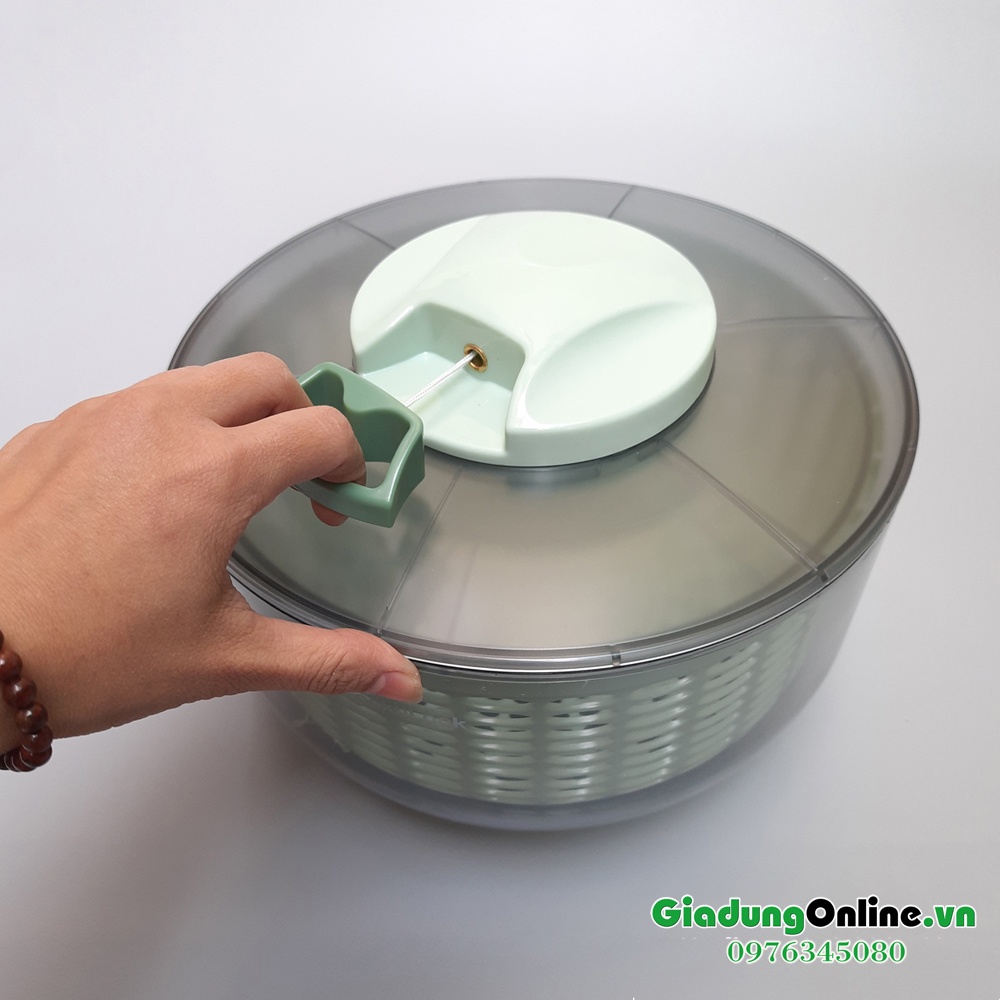 + Rửa sạch rau củ bằng cách kéo dây sẽ tạo ra lực quay ly tâm rửa sạch rau củ mà không làm nát rau củ.