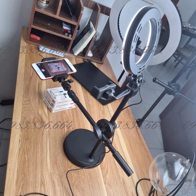 + Lắp điện thoại vào giá đỡ điện thoại, tuỳ chỉnh cao thấp, góc hướng máy quay của điện thoại, đánh đèn để được hình ảnh sản phẩm đẹp nhất, lung linh nhất