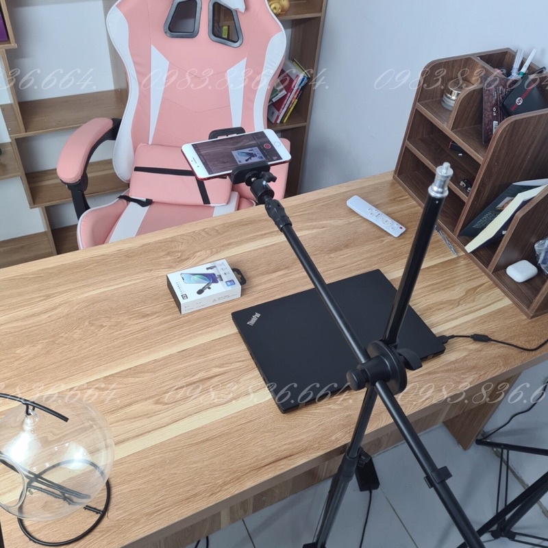 + Lắp điện thoại vào giá đỡ điện thoại, tuỳ chỉnh cao thấp, góc hướng máy quay của điện thoại, đánh đèn để được hình ảnh sản phẩm đẹp nhất, lung linh nhất