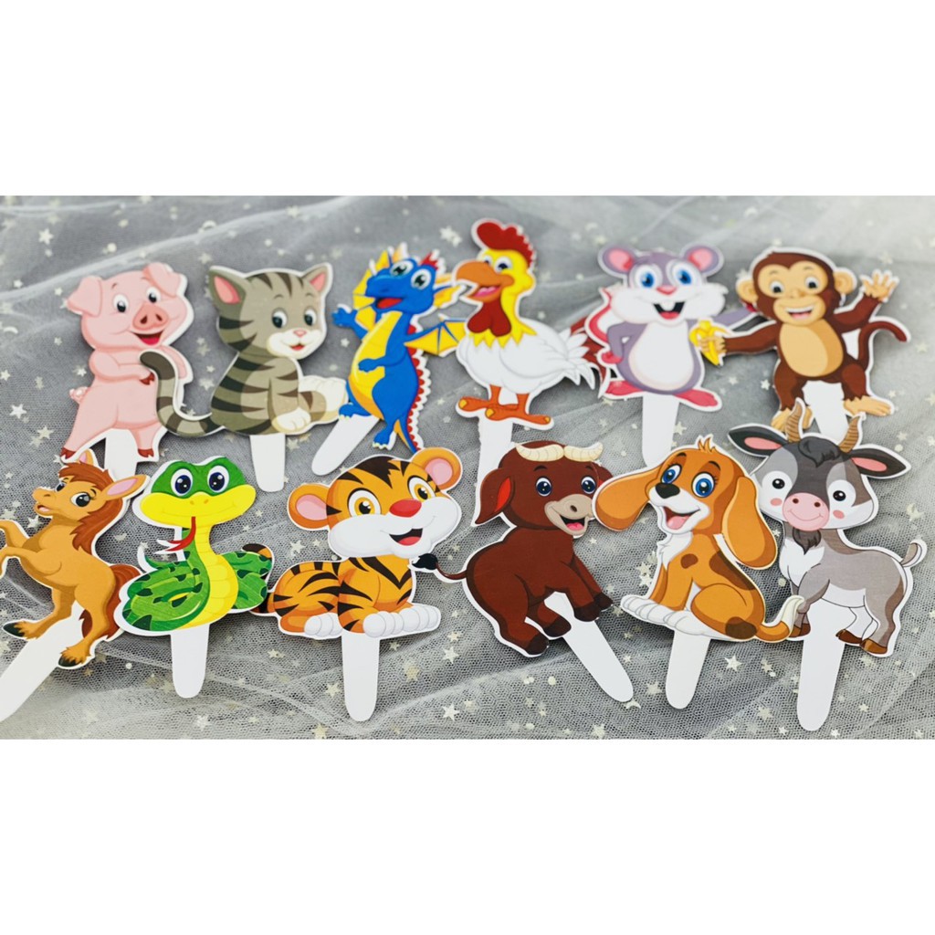 Que cắm 12 Con Giáp trang trí bánh sinh nhật, bánh rau câu
