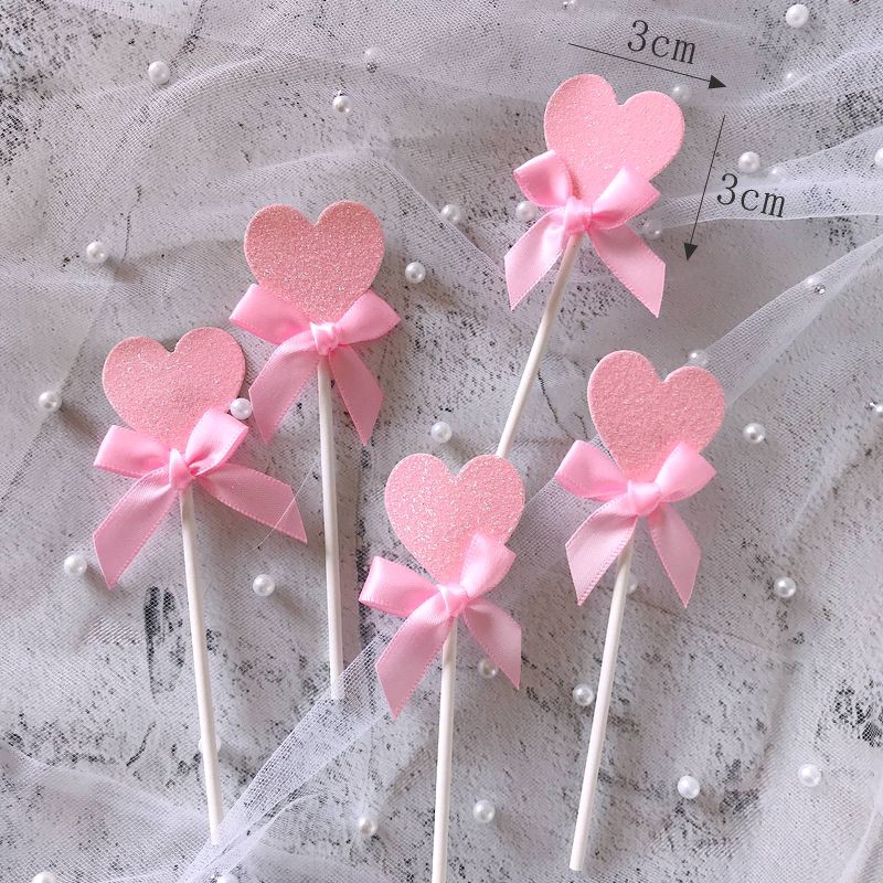 Nhà cửa & Đời sống > Dụng cụ nhà bếp > Dụng cụ nướng & trang trí bánh || Que cắm tim hồng nơ trắng (5 que)Còn hàng