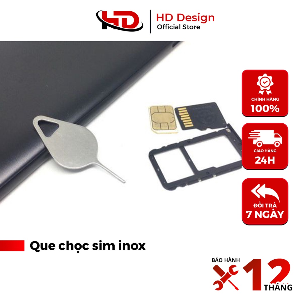 Que Chọc Sim INOX Dùng Cho Mọi Dòng Điện Thoại (Mua 1 Tặng 1) - Chính Hãng HD DESIGNTHÔNG TIN SẢN PHẨM