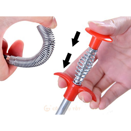 - Đầu lò xo được thiết kế rất khoa học, có thể bám vào vật cản một cách dễ dàng và chắc chắn giúp loại sạch mảng bám, tóc rối, rác thải... làm đường ống nước nhà bạn luôn thông thoáng..