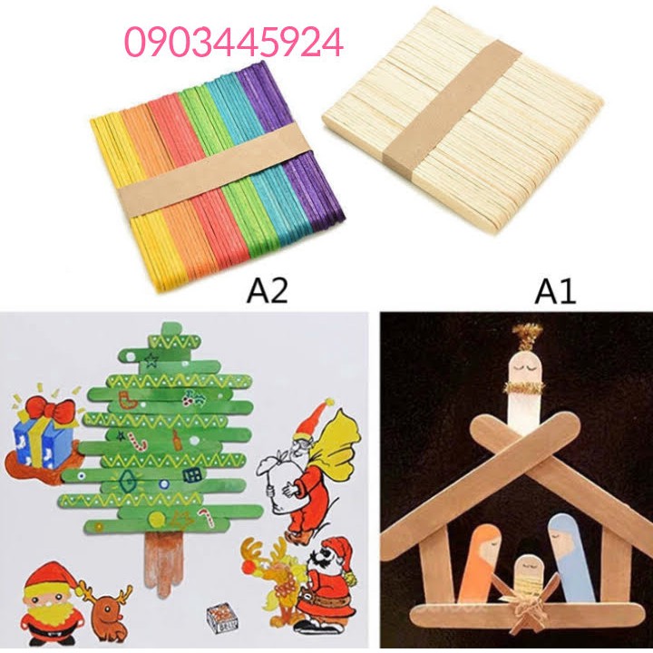 MÔ TẢ SẢN PHẨM:*Que kem gỗ trang trí thiệp, scrapbook, làm những mô hình nhà, làm hộp quà độc đáo, kệ mini đựng phụ kiện trang sức...