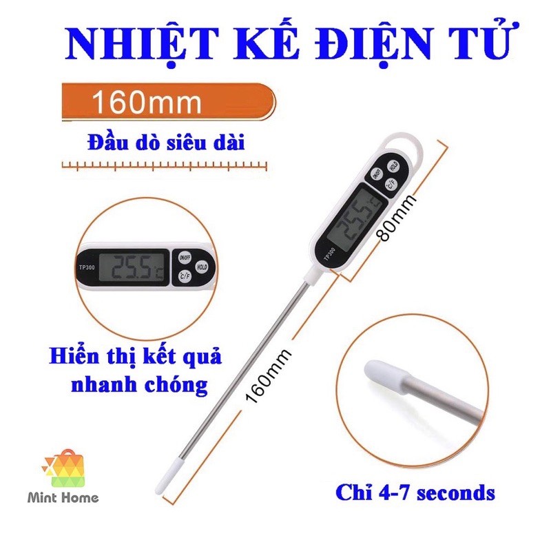 Giới thiệu Que nhiệt kế điện tử đo nhiệt độ nấu ăn pha sữa thức ăn thức uống thịt cá tiện lợi TP300