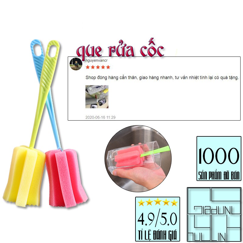 sẽ giúp công việc cọ rửa cốc chén của bạn thuận tiện và sạch sẽ hơn mà những dụng cụ vệ sinh chén đĩa thông thường sẽ không thể làm sạch toàn diện tận bên trong.- Que được làm từ chất liệu bọt biển mềm, thấm hút nước tốt, giúp rửa sạch thật dễ dàng.