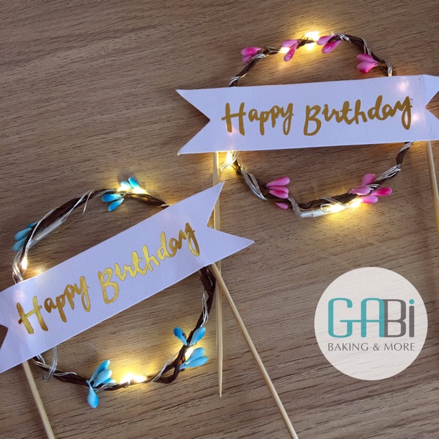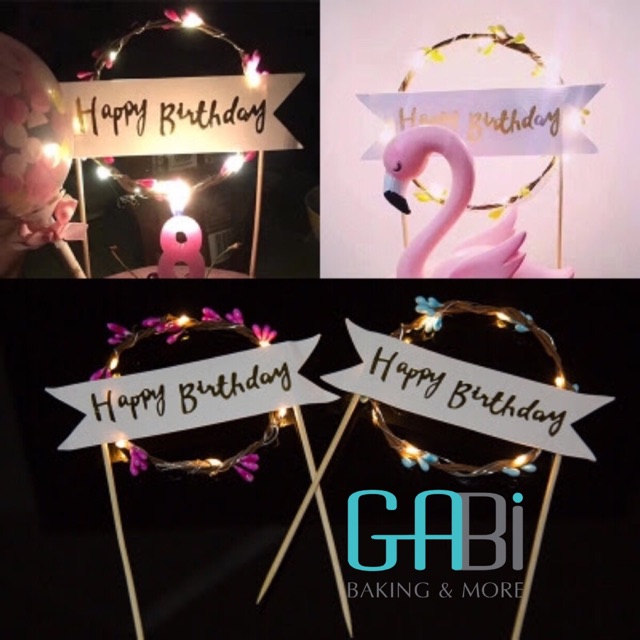 Que topper cắm bánh vòng hoa có đèn