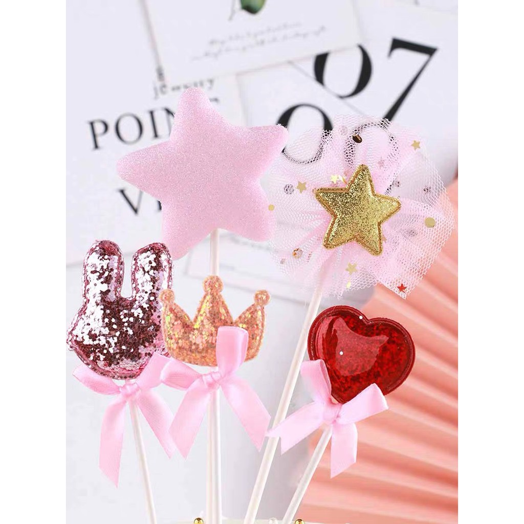 Giới thiệu Que trang trí màu hồng - thỏ - voi ren - tim đỏ