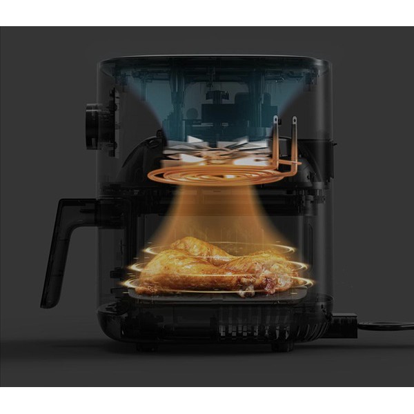 - Tương tự như các nồi chiên không dầu khác, Nồi chiên không dầu xiaomi sử dụng công nghệ làm chín thức ăn bằng khí nóng tốc độ cao mà không cần dùng đến dầu ăn, đảm bảo an toàn cho sức khỏe người dùng. Cụ thể không khí nóng luân chuyển, bao bọc thực phẩm theo mọi hướng và đẩy hết dầu mỡ bên trong thực phẩm ra ngoài. Luồng nhiệt khuấy với tốc độ cao, thức ăn được làm nóng đều hơn, bên ngoài giòn, bên trong mềm Mijia Smart Air Fryer MAF01 được trang bị công suất hoạt động lên tới 1500W giúp làm nóng nhanh hơn, khả năng làm chín thực phẩm 360° giúp thực phẩm chín đều.