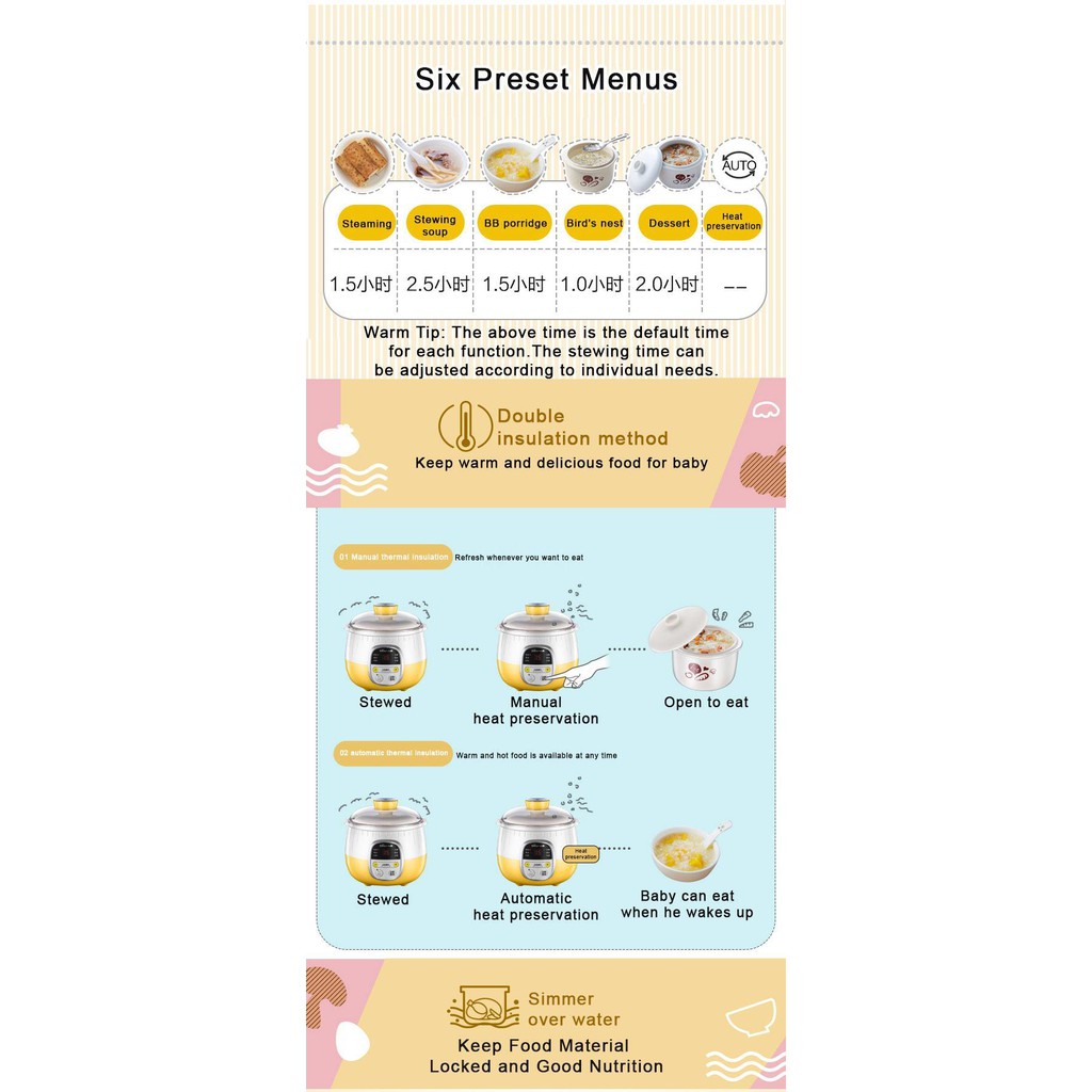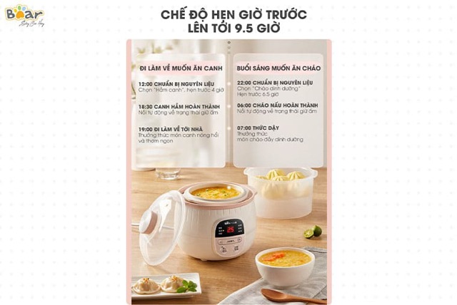 Giới thiệu < Bản Quốc Tế BH12 tháng> Nồi nấu chậm Bear 2 ngăn dùng nấu cháo ninh hầm cách thuỷ và chế biến đồ ăn dặm cho bé