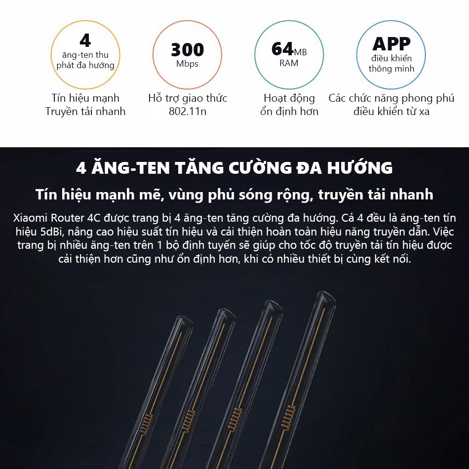 [Bản Quốc Tế] Bộ Phát Wifi Xiaomi Mi Router 4C - Bảo Hành 6 Tháng - Shop Mi HN Offical StoreChi tiết sản phẩm: