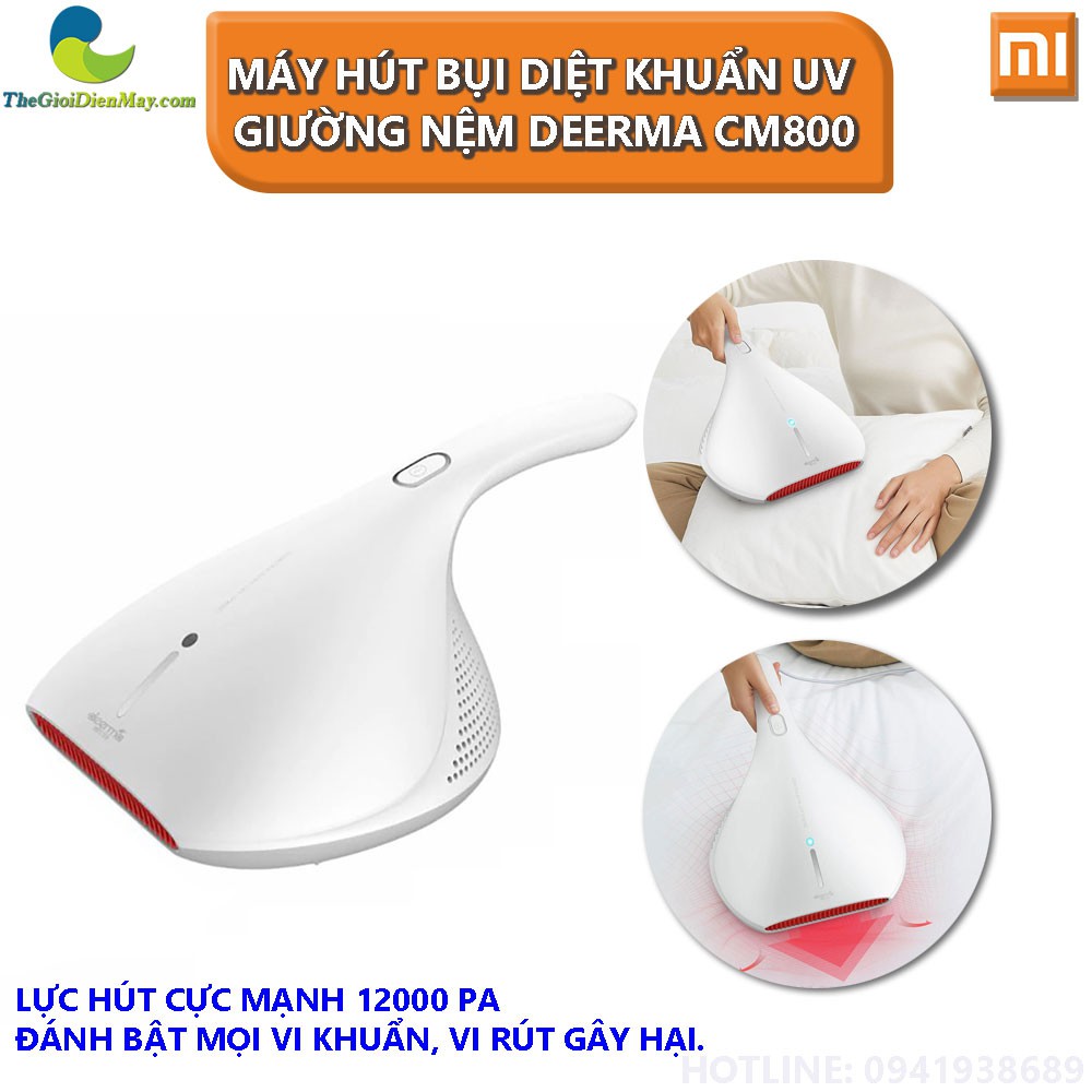 [Bản quốc tế] Máy hút bụi diệt khuẩn UV Xiaomi Deerma CM800 cho giường, nệm, gối, chăn, sofa.... - Bảo Hành 1 tháng - Shop Thế Giới Điện MáyMáy hút bụi diệt khuẩn UV Deerma CM800 với thiết kế nhỏ gọn, cầm tay tiện lợi cho khả năng làm sạch bụi bẩn và diệt khuẩn tối ưu đối với các vật dụng như: giường nệm, sofa,… Chính vì vậy, thiết bị này hứa hẹn sẽ là một món sản phẩm rất đáng để đầu tư cho mọi gia đình. Sở hữu kích thước nhỏ gọn, công suất hoạt động mạnh mẽ nhưng âm thanh phát ra vẫn khá yên tĩnh. Bên cạnh đó, nhà sản xuất còn trang bị thêm hệ thống đèn chiếu tia UV giúp loại bỏ và tiêu diệt 99% vi khuẩn, bụi bẩn bám trên mọi bề mặt. Do đó, người dùng hoàn toàn có thể an tâm sử dụng sản phẩm này để có thể bảo vệ sức khỏe của bản thân và gia đình mình một cách tốt nhất.