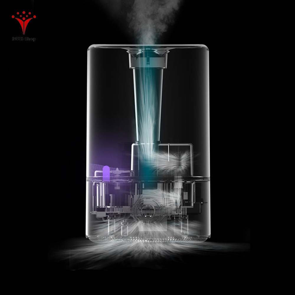 Công suất mạnh mẽ đến 25W tạo ra rung động tần số cao của sóng siêu âm 1.7 triệu lần/giây, các phân tử nước sẽ thành các hạt siêu mịn 1-5 µm, lưu lượng phun đạt 300ml/h. Từ đó tạo ra một lượng hơi sương dồi dào, nhanh chóng làm ẩm đến mọi ngóc ngách trong toàn bộ không gian.
