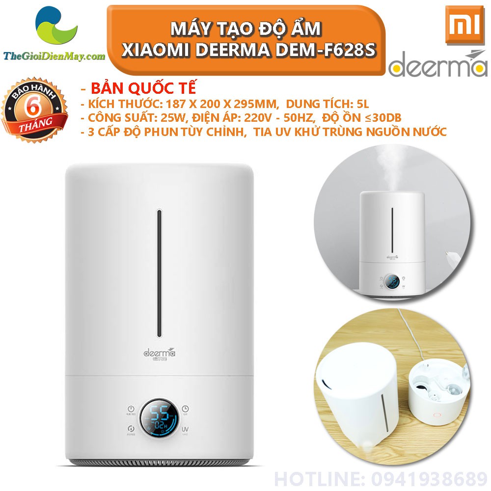 [Bản quốc tế] Máy tạo độ ẩm không khí thông minh Xiaomi Deerma DEM-F628S dung tích 5L, đèn UV làm sạch nguồn nước - Bảo hành 6 tháng - Shop Thế Giới Điện Máy*** LƯU Ý: CÁC MÁY SỬ DỤNG ĐƯỢC TINH DẦU CÓ KHAY TINH DẦU RIÊNG THÌ QUÝ KHÁCH VUI LÒNG CHỈ NHỎ 1-2 GIỌT TINH DẦU TRÁNH ĐỂ TÌNH TRẠNG TINH DẦU CHẢY TRÀN RA NGOÀI LÀM ĂN MÒN NHỰA GÂY THỦNG MÁY, HỎNG MÁY SHOP KHÔNG CHỊU TRÁCH NHIỆM