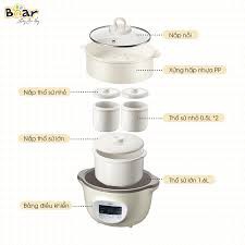 [Bản Quốc Tế]Nồi Nấu Cháo Chậm, Hầm, Ninh Cách Thủy Đa Năng Kèm Lồng Hấp Bear 1.6L (Bản Tiếng Anh)