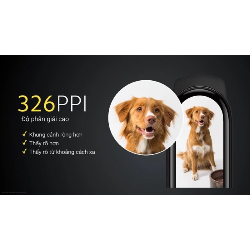 Vòng đeo tay thông minh Mi Band 6 thế hệ mới có màn hình AMOLED màu 1.56 inch, lớn hơn đáng kể so với kích thước 1.1 inch của Mi Band 5. Màn hình này cũng có độ phân giải cao hơn là 152 x 360 pixel, cho mật độ điểm ảnh 326 ppi. Mặt vòng tay 1.56” toàn màn hình đa dạng với hơn 60 mặt vòng tay để lựa chọn.