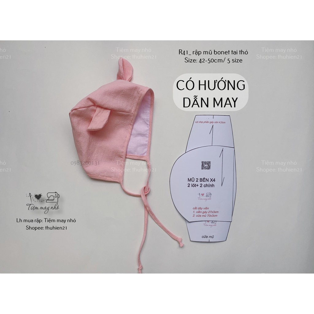 R41_CÓ HD MAY_rập may mũ tai gấu cho béCó clip hướng dẫn may tại kênh Tiệm may nhỏ